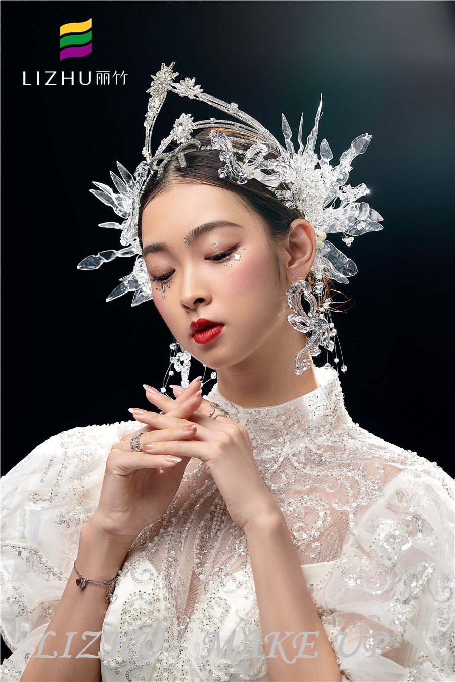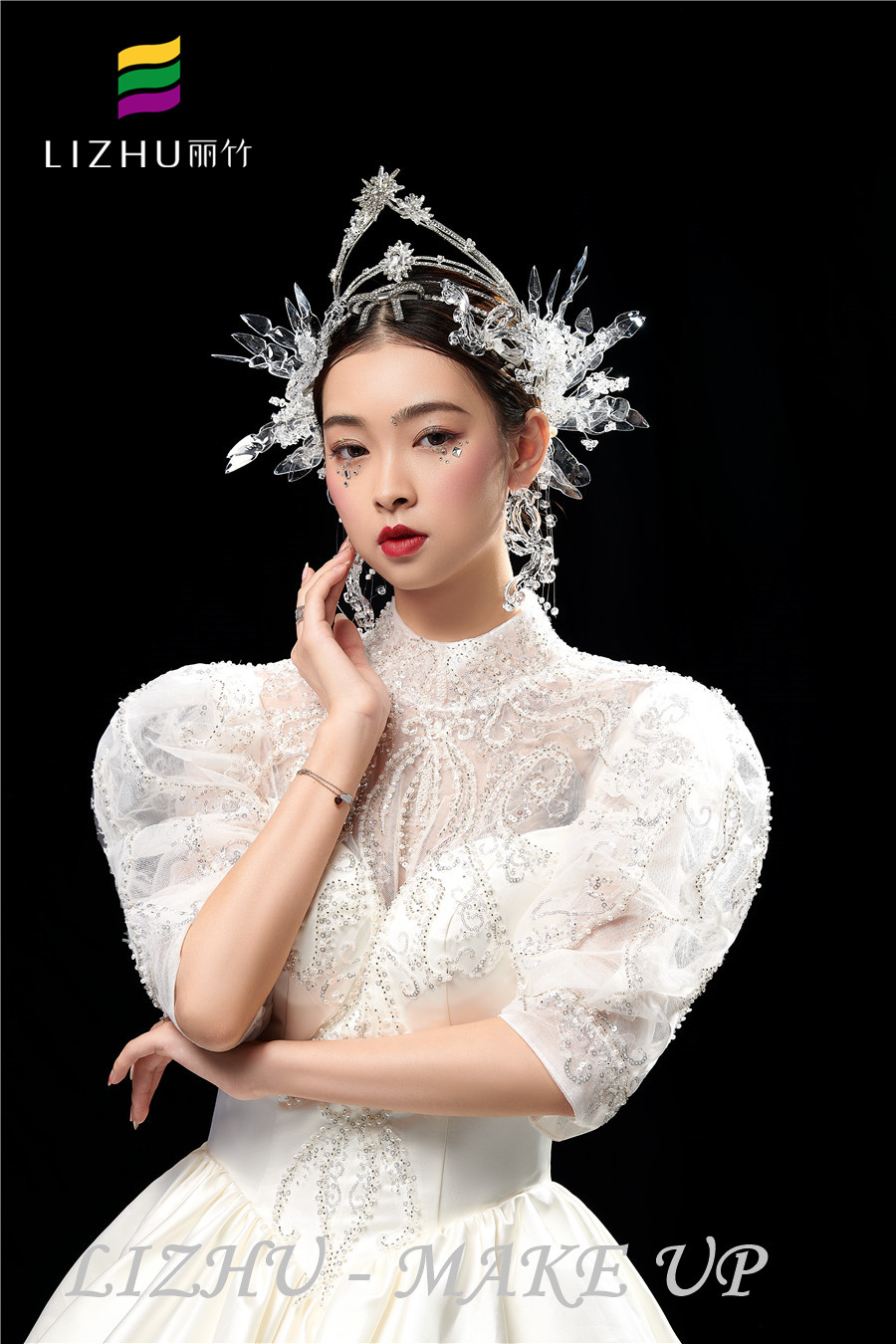 南寧彩妝師培訓(xùn)學(xué)校、南寧化妝學(xué)校短期培訓(xùn)班作品---輕奢鉆石新娘造型:,輕薄自然的底妝打造,亮片碎鉆點綴眼妝周邊,打造閃閃亮亮的奢華感,奢華水晶頭飾與重工禮服相呼應(yīng),好一個高奢精致美人。要問南寧哪家化妝學(xué)校比較熱門,請到南寧化妝彩妝培訓(xùn)學(xué)校(麗竹彩妝學(xué)校)去參觀試聽吧!